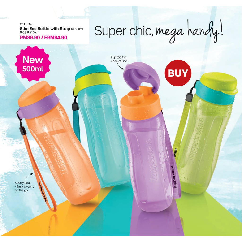 Tupperware Slim Eco Bottle with Strap 500ml Dwicolour Sumber : shopee.com.my